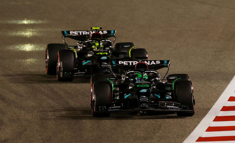 Formula One F1 – Bahrain Grand Prix – Bahrain International Circuit, Sakhir, Bahrain – March 4, 2023 Mercedes’ George Russell and Mercedes’ Lewis Hamilton during qualifying REUTERS/Rula Rouhana