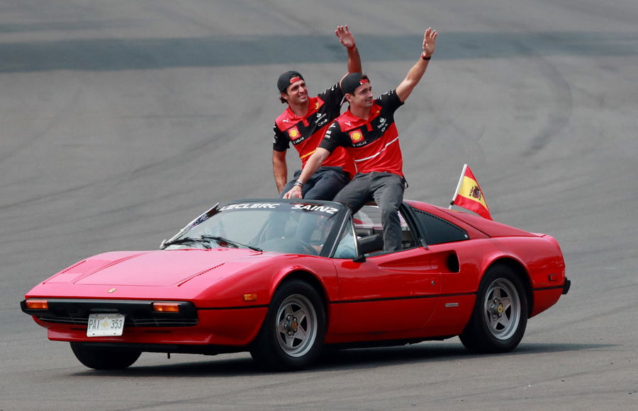 Formula One F1 – Mexico City Grand Prix – Autodromo Hermanos Rodriguez, Mexico City, Mexico – October 30, 2022 Ferrari’s Charles Leclerc and Carlos Sainz Jr. during the drivers’ parade ahead of the race REUTERS/Henry Romero