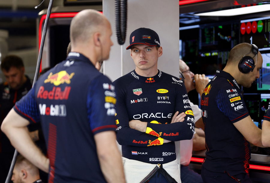 Formula One F1 – Saudi Arabian Grand Prix – Jeddah Corniche Circuit, Jeddah, Saudi Arabia – March 17, 2023. Red Bull’s Max Verstappen in the pits during practice. REUTERS/Rula Rouhana