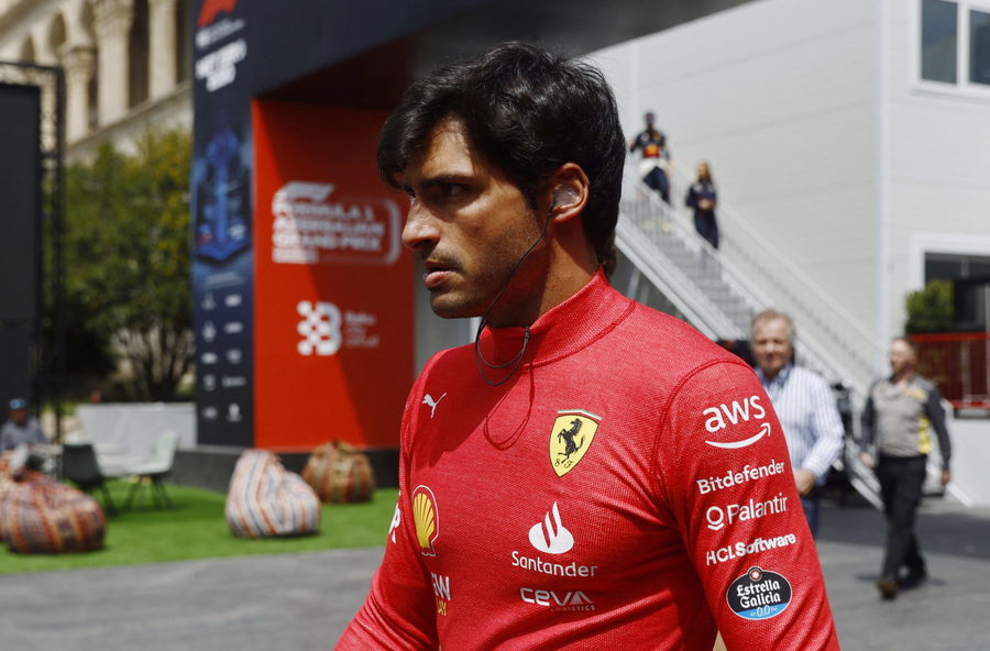 Formula One F1 – Azerbaijan Grand Prix – Baku City Circuit, Baku, Azerbaijan – April 28, 2023 Ferrari’s Carlos Sainz Jr. arrives ahead of practice REUTERS/Leonhard Foeger