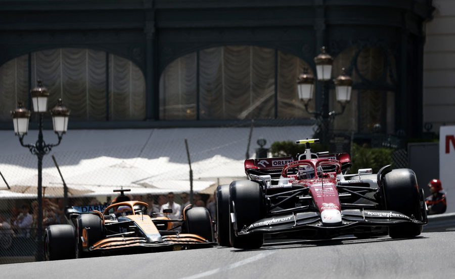 Formula One F1 – Monaco Grand Prix – Circuit de Monaco, Monte Carlo, Monaco – May 27, 2022, Alfa Romeo’s Guanyu Zhou and McLaren’s Daniel Ricciardo in action during practice REUTERS/Benoit Tessier