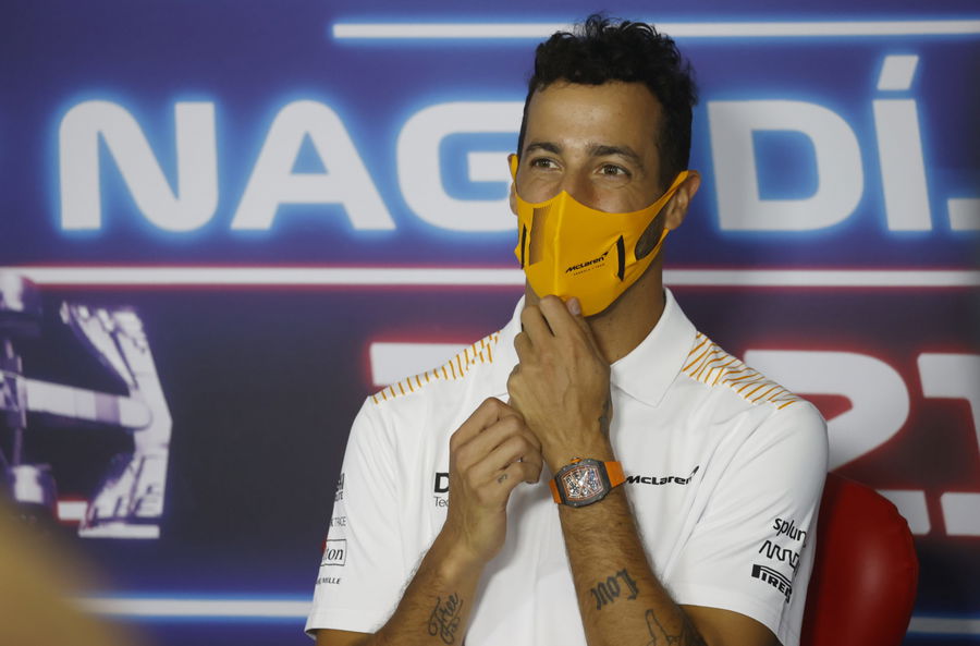 Formula One F1 – Belgian Grand Prix – Spa-Francorchamps, Spa, Belgium – August 26, 2021 McLaren’s Daniel Ricciardo in the FIA Press Conference FIA/Handout via REUTERS