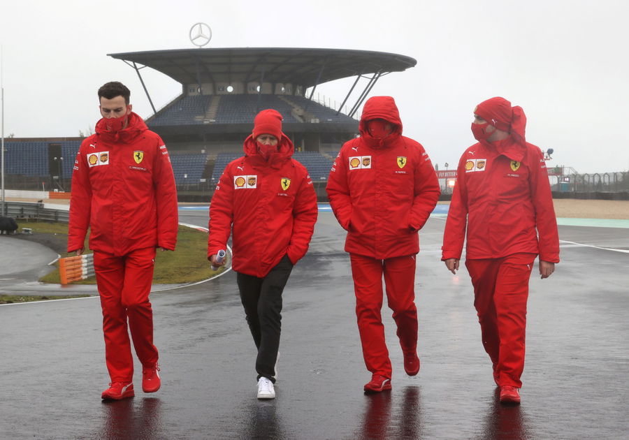 Formula One F1 – Eifel Grand Prix – Nurburgring, Nurburg, Germany – Ferrari’s Sebastian Vettel on the circuit wearing a protective face mask with his team ahead of the Grand Prix REUTERS/Wolfgang Rattay