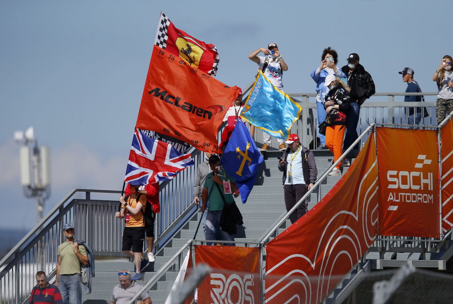 Motor racing – Formula One – Russian Grand Prix – Sochi Autodrom, Sochi, Russia – September 24, 2021 Fans with flags during practice REUTERS/Anton Vaganov