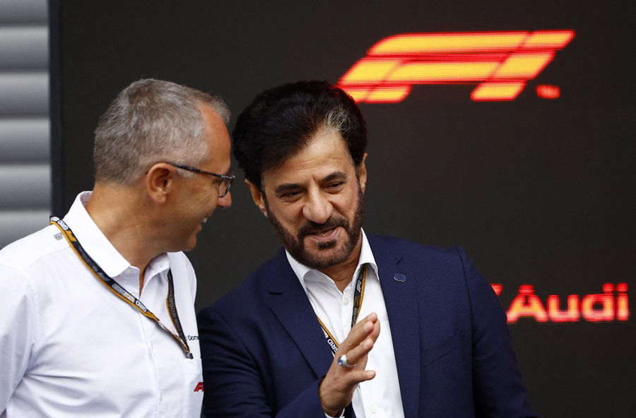Formula One F1. Belgian Grand Prix. Spa-Francorchamps, Spa, Belgium. August 26, 2022. CEO of Formula One Group, Stefano Domenicali. FIA President Mohammed bin Sulayem. REUTERS/Stephane Mahe