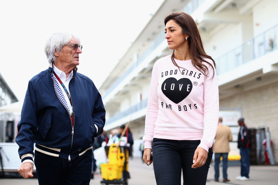 AUSTIN, TX – NOVEMBER 14: F1 supremo Bernie Ecclestone and his wife Fabiana Flosi arrive in the paddock during previews to the United States Formula One Grand Prix at Circuit of The Americas on November 14, 2013 in Austin, United States. (Photo by Paul Gilham/Getty Images)