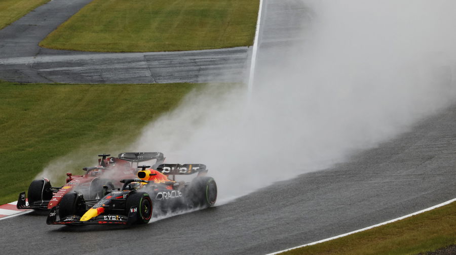 Formula One F1 – Japanese Grand Prix – Suzuka Circuit, Suzuka, Japan – October 9, 2022 Ferrari’s Charles Leclerc and Red Bull’s Max Verstappen after the start of the race REUTERS/Issei Kato