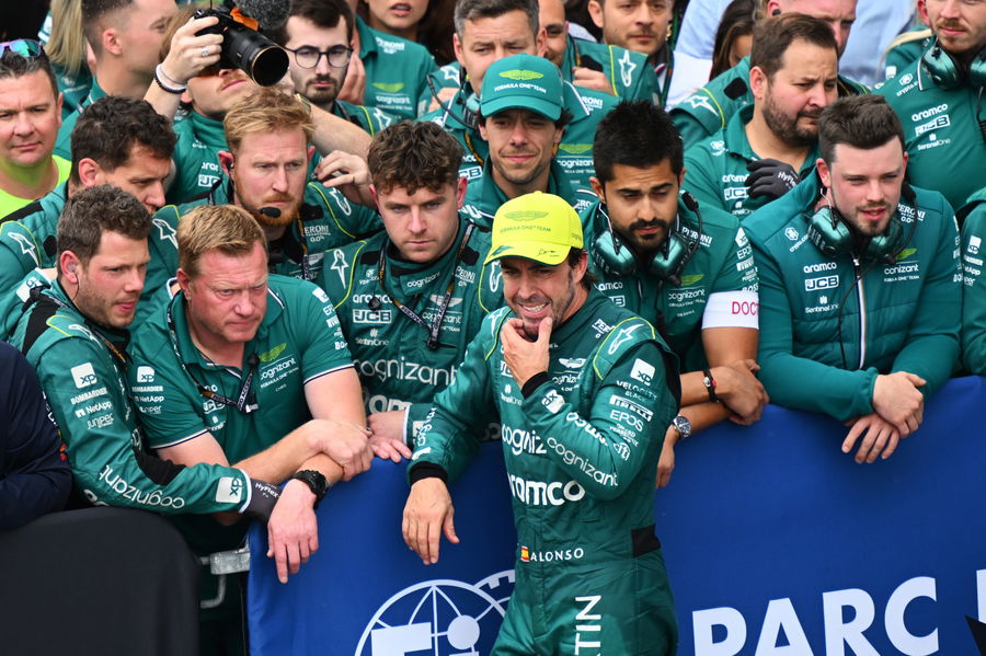 MONTREAL, QUEBEC – JUNE 18: Second placed Fernando Alonso of Spain and Aston Martin F1 Team celebrates in parc ferme during the F1 Grand Prix of Canada at Circuit Gilles Villeneuve on June 18, 2023 in Montreal, Quebec. (Photo by Clive Mason/Getty Images)