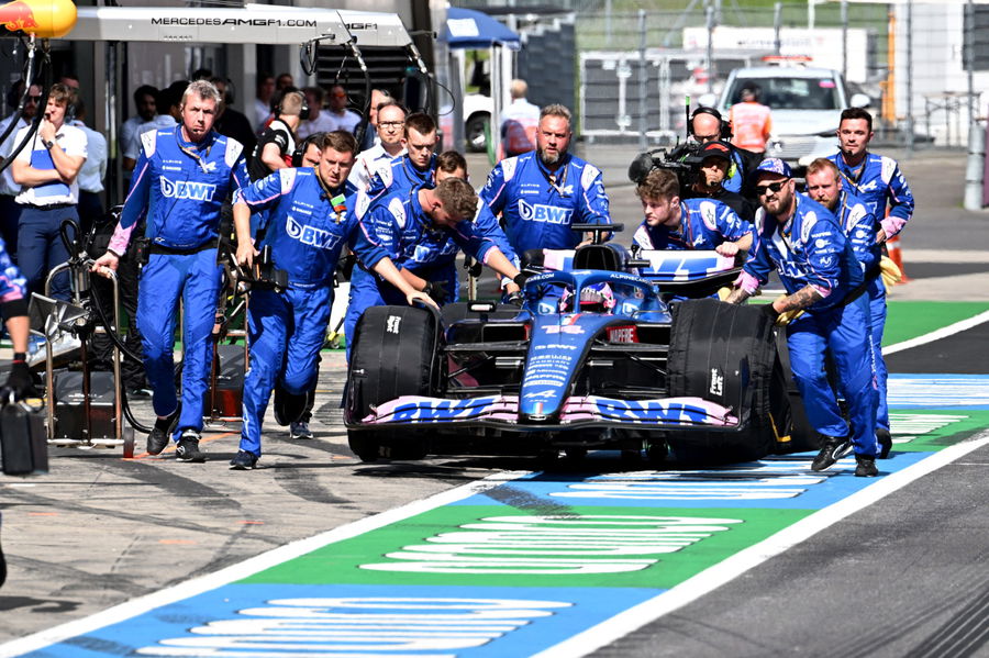 Formula One F1 – Austrian Grand Prix – Red Bull Ring, Spielberg, Austria – July 9, 2022 Alpine’s Fernando Alonso in the pits after he fails to take start of the sprint race Pool via REUTERS/Christian Bruna