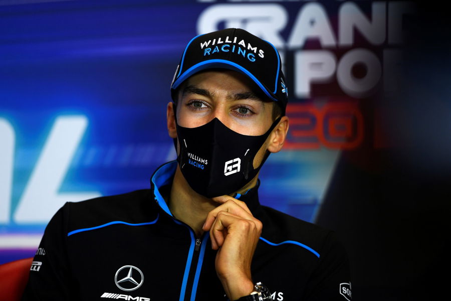 Formula One F1 – Portuguese Grand Prix – Algarve International Circuit, Portimao, Portugal – Williams’ George Russell during the press conference FIA/Handout via REUTERS