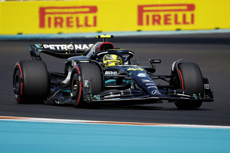Formula One F1 – Miami Grand Prix – Miami International Autodrome, Miami, Florida, U.S. – May 6, 2023. Mercedes’ Lewis Hamilton during qualifying REUTERS/Marco Bello