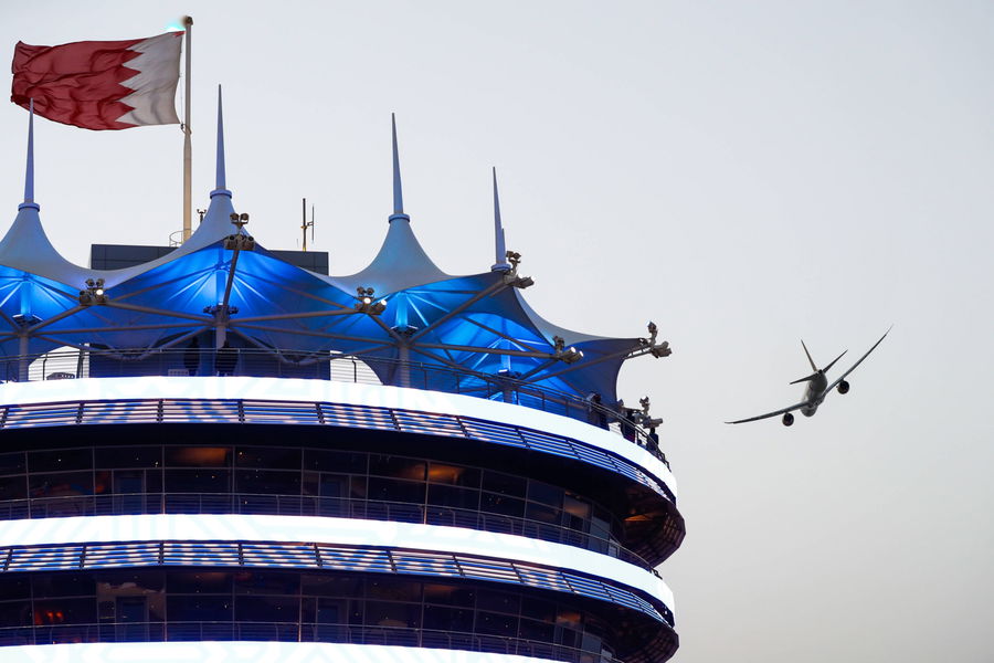 Formula 1 2022: Bahrain GP BAHRAIN INTERNATIONAL CIRCUIT, BAHRAIN – MARCH 20: A 787-9 Dreamliner of Gulf Air flies over prior to the start during the Bahrain GP at Bahrain International Circuit on Sunday March 20, 2022 in Sakhir, Bahrain. Photo by Carl Bingham / LAT Images Images PUBLICATIONxINxGERxSUIxAUTxHUNxONLY GP2201_154847_X4I0249
