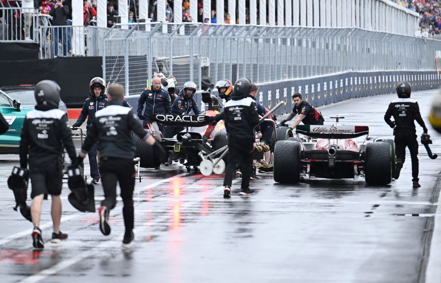 Formula One F1 – Canadian Grand Prix – Circuit Gilles Villeneuve, Montreal, Canada – June 18, 2022 Red Bull’s Max Verstappen car is pushed back into the garage during qualifying Pool via REUTERS/Jim Watson