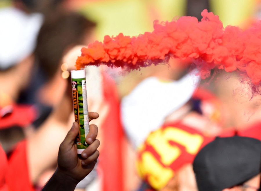 Formula One F1 – Italian Grand Prix – Autodromo Nazionale Monza, Monza, Italy – September 11, 2022 A spectator holds a flare during the trophy ceremony REUTERS/Massimo Pinca