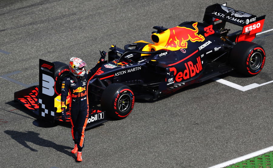 NORTHAMPTON, ENGLAND – Max Verstappen of the Netherlands driving the (33) Aston Martin Red Bull Racing RB16 during the Red Bull Racing RB16 launch at Silverstone Circuit in Northampton, England. (Photo by Bryn Lennon/Getty Images)