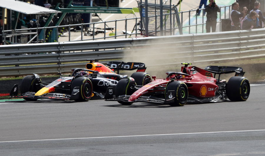 Formula One F1 – British Grand Prix – Silverstone Circuit, Silverstone, Britain – July 3, 2022 Red Bull’s Max Verstappen and Ferrari’s Carlos Sainz Jr. in action during the race REUTERS/Molly Darlington