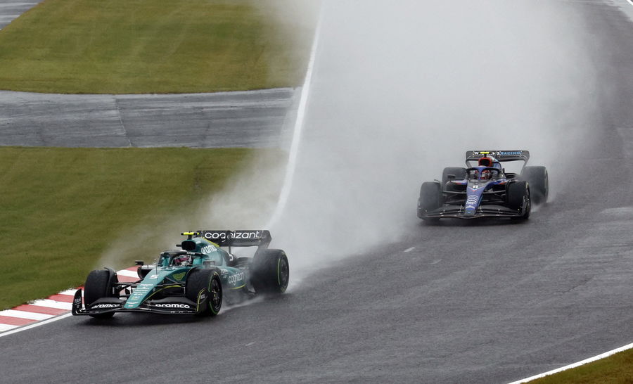 Formula One F1 – Japanese Grand Prix – Suzuka Circuit, Suzuka, Japan – October 9, 2022 Aston Martin’s Sebastian Vettel and Williams’ Nicholas Latifi in action during the race REUTERS/Issei Kato
