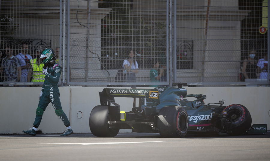 Formula One F1. Azerbaijan Grand Prix. Baku City Circuit, Baku, Azerbaijan. Aston Martin’s Lance Stroll walks away form his car after crashing during qualifying REUTERS/Anton Vaganov
