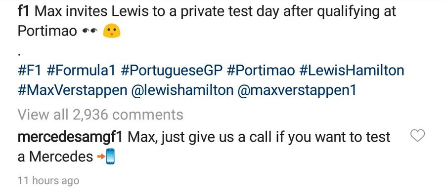 Mercedes’ comment read, “Max, just give us a call if you want to test a Mercedes”. Rest assured, quite a few people will be longing for the swap to happen between these two drivers!