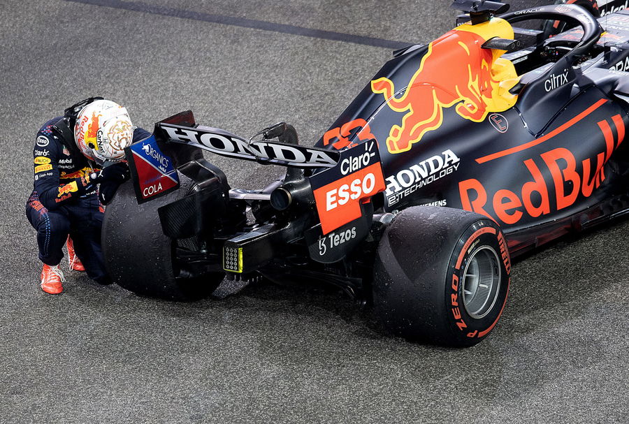 ABU DHABI, UNITED ARAB EMIRATES – DECEMBER 12: Race winner and 2021 F1 World Drivers Champion Max Verstappen of Netherlands and Red Bull Racing celebrates in parc ferme during the F1 Grand Prix of Abu Dhabi at Yas Marina Circuit on December 12, 2021 in Abu Dhabi, United Arab Emirates. (Photo by Mahmoud Khaled – Formula 1/Formula 1 via Getty Images)