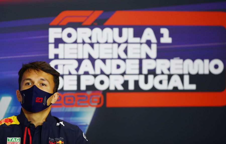Formula One F1 – Portuguese Grand Prix – Algarve International Circuit, Portimao, Portugal – October 22, 2020 Red Bull’s Alexander Albon during the press conference FIA/Handout via REUTERS
