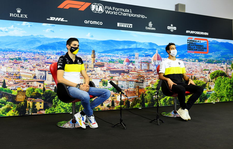 Formula One F1 – Tuscan Grand Prix – Mugello, Scarperia e San Piero, Italy – Renault’s Esteban Ocon and Daniel Ricciardo during a press conference FIA/Handout via REUTERS