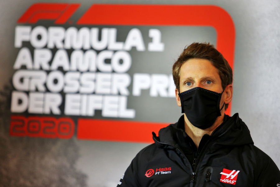 Formula One F1 – Eifel Grand Prix – Nurburgring, Nurburg, Germany – October 8, 2020 Haas’ Romain Grosjean during a press conference ahead of the Eifel Grand Prix FIA/Handout via REUTERS