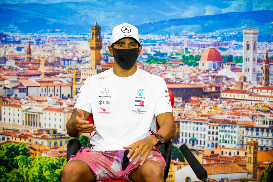 Formula One F1 – Tuscan Grand Prix – Mugello, Scarperia e San Piero, Italy – Mercedes’ Lewis Hamilton during a press conference after winning the Tuscan Grand Prix FIA/Handout via REUTERS