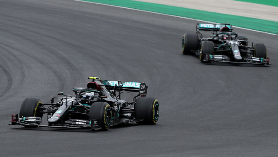 Formula One F1 – Portuguese Grand Prix – Algarve International Circuit, Portimao, Portugal – Mercedes’ Valtteri Bottas and Lewis Hamilton in action during the race Pool via REUTERS/Jose Sena Goulao