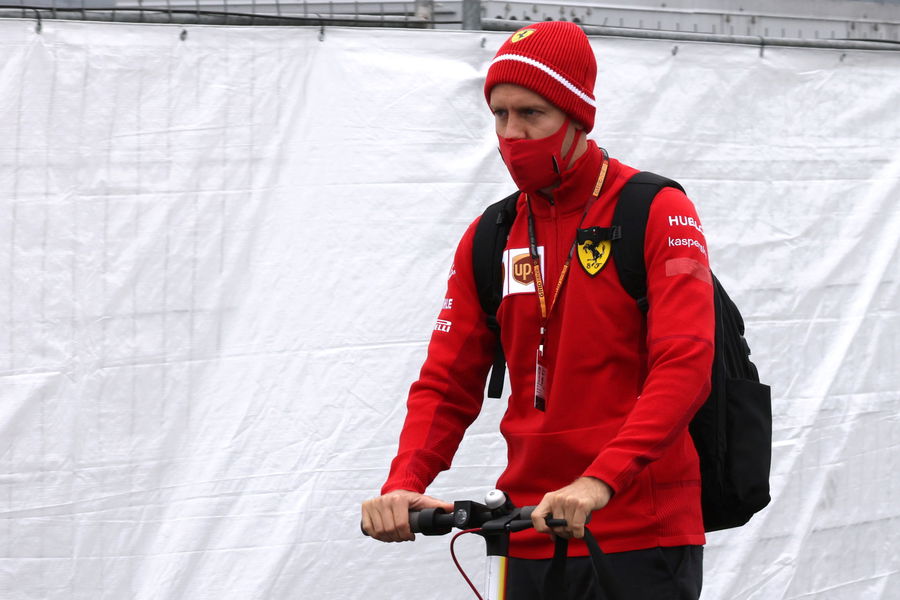 Formula One F1 – Eifel Grand Prix – Nurburgring, Nurburg, Germany – October 8, 2020 Ferrari’s Sebastian Vettel arrives at the circuit wearing a protective face mask ahead of the Grand Prix REUTERS/Wolfgang Rattay