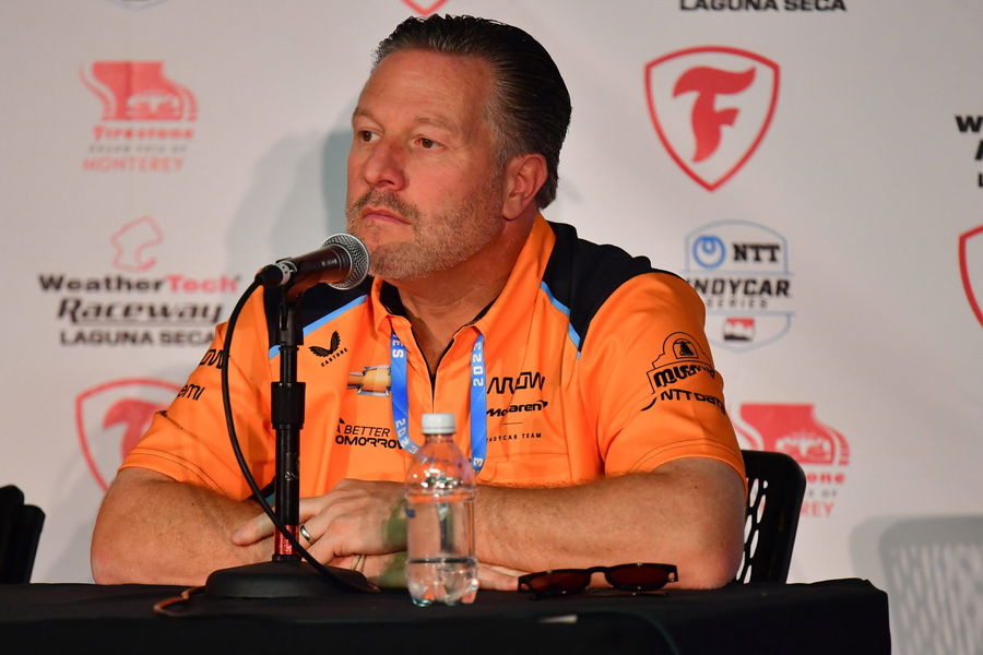 IndyCar, Indy Car, IRL, USA Firestone Grand Prix of Monterey – Practice 1 Sep 8, 2023 Salinas, California, USA McLaren Racing chief executive officer Zak Brown speaks to announce driver David Malukas 18 move to Arrow McLaren Racing for the 2024 season before free practice at WeatherTech Raceway Laguna Seca. Salinas WeatherTech Raceway Laguna Seca California USA, PUBLICATIONxINxGERxSUIxAUTxONLY Copyright: xGaryxA.xVasquezx 20230908_gav_sv5_055
