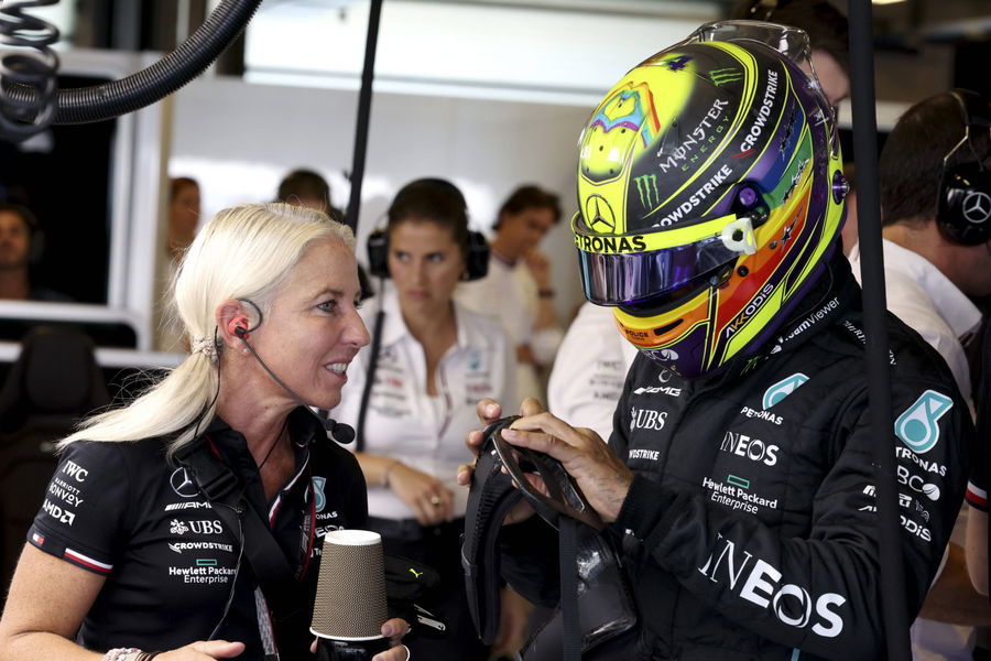 Angela Cullen GBR, Mercedes-AMG Petronas F1 Team, 44 Lewis Hamilton GBR, Mercedes-AMG Petronas F1 Team, F1 Grand Prix of Abu Dhabi at Yas Marina Circuit on November 19, 2022 in Abu Dhabi, United Arab Emirates. Photo by HOCH ZWEI Abu Dhabi United Arab Emirates *** Angela Cullen GBR, Mercedes AMG Petronas F1 Team , 44 Lewis Hamilton GBR, Mercedes AMG Petronas F1 Team , F1 Grand Prix of Abu Dhabi at Yas Marina Circuit on November 19, 2022 in Abu Dhabi, United Arab Emirates Photo by HOCH ZWEI Abu Dhabi United Arab Emirates