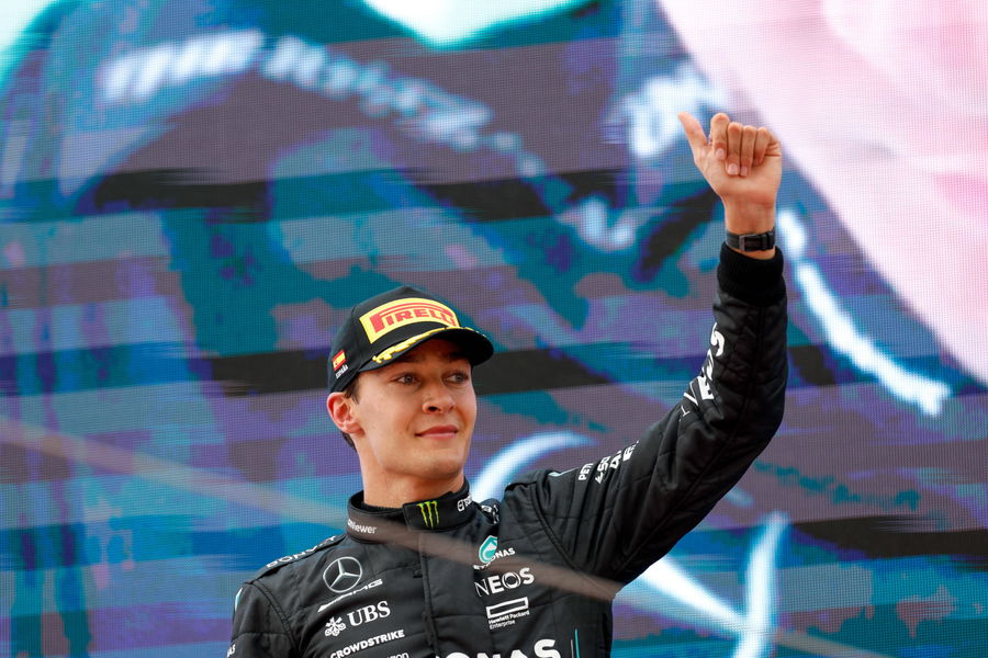 RUSSELL George gbr, Mercedes AMG F1 Team W14, portrait podium during the Formula 1 AWS Gran Premio de Espana 2023, 7th round of the 2023 Formula One World Championship, WM, Weltmeisterschaft from June 2 to 4, 2023 on the Circuit de Barcelona-Catalunya, in Montmelo, Spain – F1 – SPANISH GRAND PRIX 2023 – RACE DPPI/Panoramic PUBLICATIONxNOTxINxFRAxITAxBEL 00123015_F12023GP08ESP_JK052860