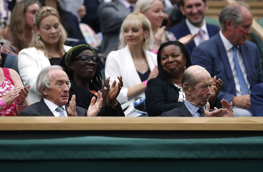 Tennis – Wimbledon – All England Lawn Tennis and Croquet Club, London, Britain – June 28, 2021 Britain’s Prince Edward, the Duke of Kent with former F1 racing driver Jackie Stewart in the royal box on centre court before the start of play REUTERS/Paul Childs