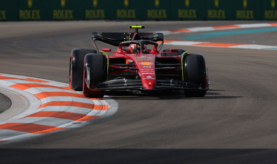 Ferrari F1 driver Carlos Sainz Jr. during the Miami GP qualifying. REUTERS/Brian Snyder