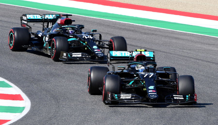 Formula One F1 – Tuscan Grand Prix – Mugello, Scarperia e San Piero, Italy -Mercedes’ Valtteri Bottas and Mercedes’ Lewis Hamilton in action during the race Pool via REUTERS/Jennifer Lorenzini