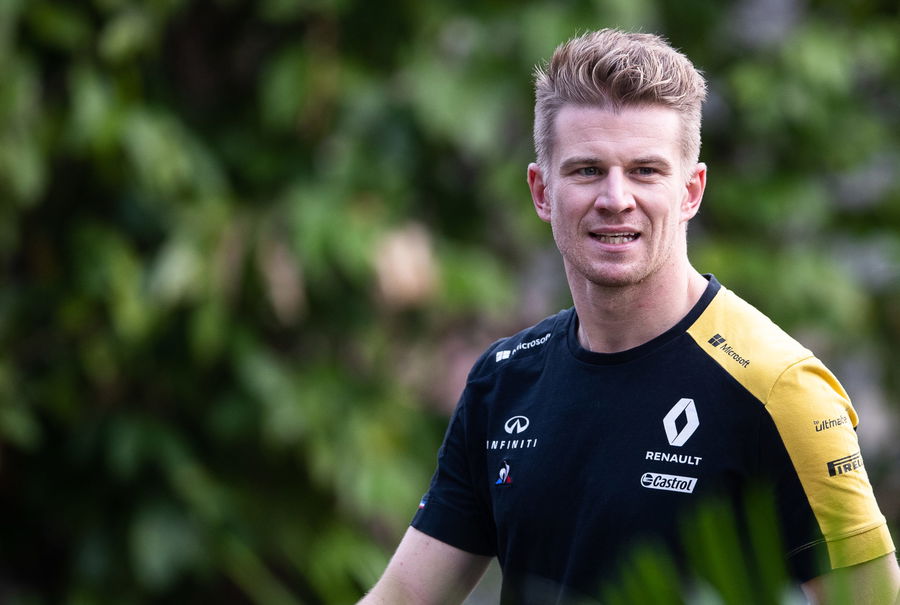 SINGAPORE, SINGAPORE – SEPTEMBER 19: Nico Hulkenberg of Germany and Renault Sport F1 walks in the Paddock during previews ahead of the F1 Grand Prix of Singapore at Marina Bay Street Circuit on September 19, 2019 in Singapore. (Photo by Lars Baron/Getty Images)