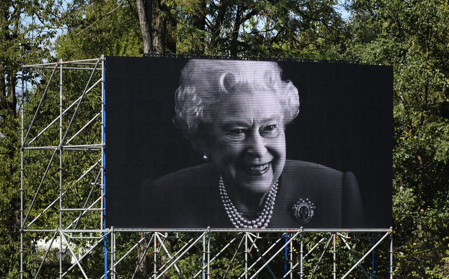 Formula One F1 – Italian Grand Prix – Autodromo Nazionale Monza, Monza, Italy – September 11, 2022 General view of a big screen displaying an image of Britain’s Queen Elizabeth following her passing REUTERS/Massimo Pinca