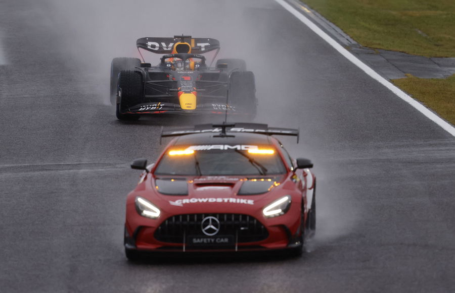 Formula One F1 – Japanese Grand Prix – Suzuka Circuit, Suzuka, Japan – October 9, 2022 Red Bull’s Max Verstappen behind a safety car after the race was stopped due to bad weather conditions REUTERS/Issei Kato