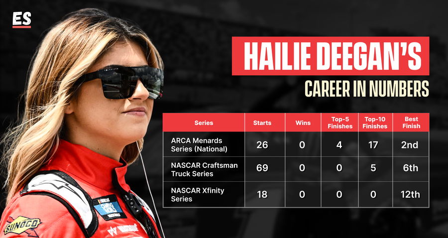 In her three seasons in the Truck Series, Deegan failed to break into the top five, but finished as high as sixth at Talladega Superspeedway and Texas Motor Speedway. And, despite her underwhelming reasons, strong sponsorship backing helped her progress into the Xfinity Series with AM Racing in 2024. Still, the results went from bad to worse.