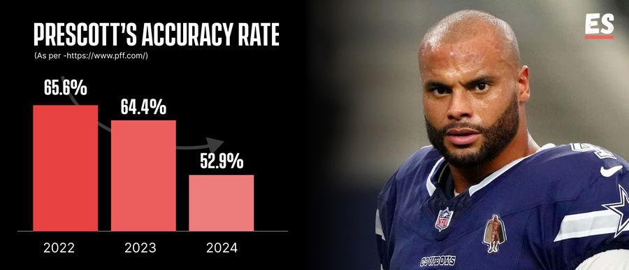 Even before he hurt his hamstring against the Falcons last year, Prescott’s accuracy rate dropped dramatically from 65.6% in 2022 to 52.9% in 2024. To put it in context, the QB managed only 11 TDs against 8 picks in eight games before the injury. Fast forward to now, and Prescott remains optimistic about an impressive return, sure. But the question emerges: Will he come back in his original form?