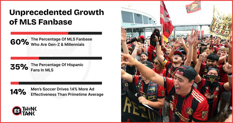 - 60% of the MLS fanbase consists of Gen Z or millennials, and 35% are Hispanic– the ideal demographics for advertisers.
