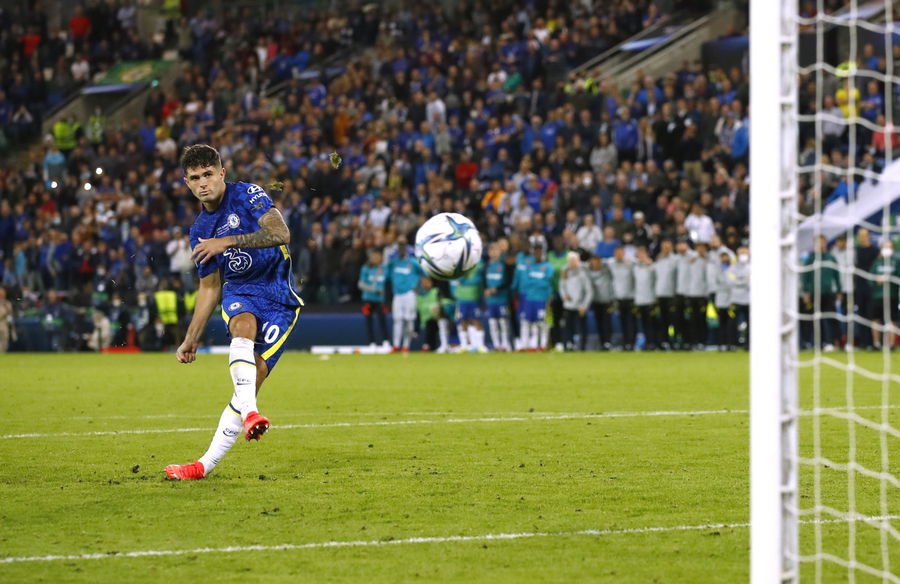 Soccer Football – European Super Cup – Chelsea v Villarreal – Windsor Park, Belfast, Northern Ireland – August 11, 2021 Chelsea’s Christian Pulisic scores his penalty during the shoot-out Action Images via Reuters/Jason Cairnduff