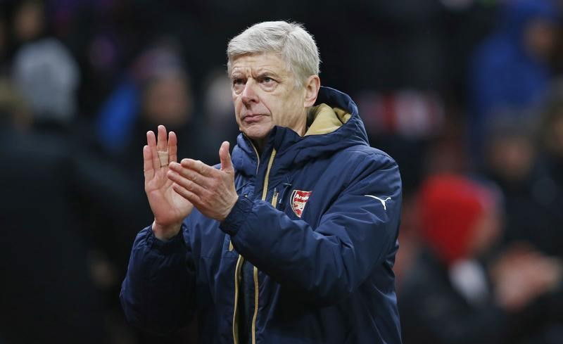 Football Soccer – Stoke City v Arsenal – Barclays Premier League – Britannia Stadium – 17/1/16. Arsenal manager Arsene Wenger applauds the fans at the end of the match