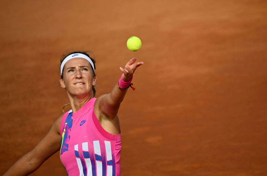 Victoria Azarenka in action during her quarter final against Garbine Muguruza Pool via REUTERS/Riccardo Antimiani