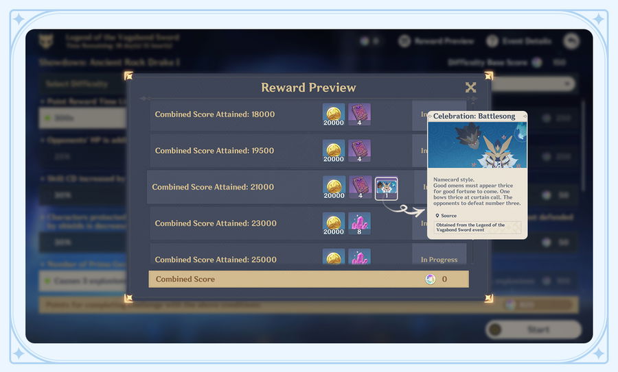 In a recent post, miHoYo even said,” Your total score is the sum of your high scores from each stage. Reaching a certain total score will grant you an opportunity to claim the event-exclusive name card, Celebration: Battlesong.”