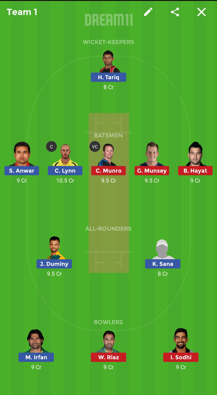 Five batsmen have been included in the Brampton Wolves vs Winnipeg Hawks Dream 11 Predictions team. They are Chris Lynn, George Munsey, Colin Munro, Babar Hayat and Shaiman Anwar. All of the players have been dealing in the fifties and expected to keep their formidable form in the game also.