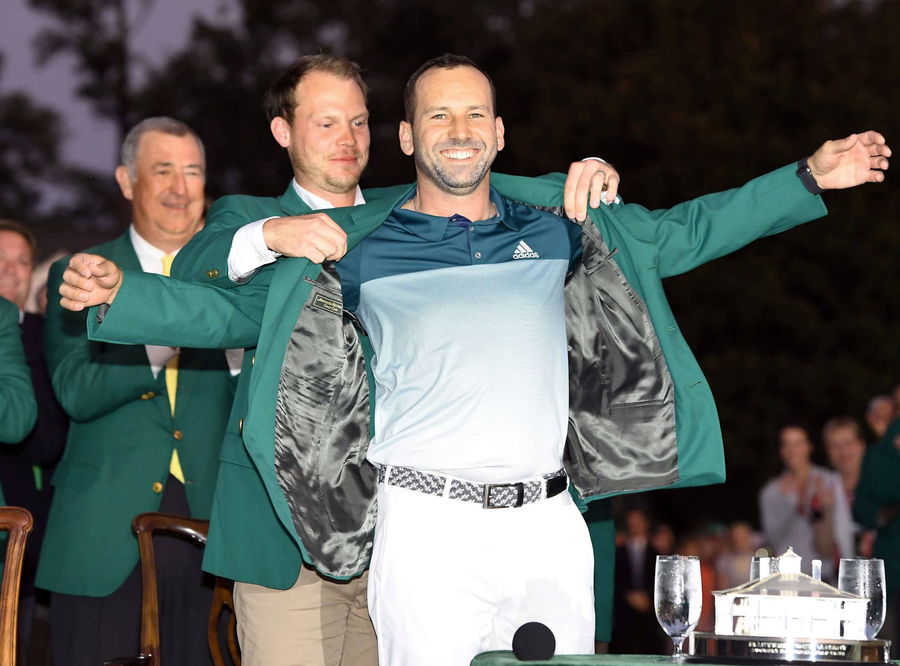 Golf: Garcia wins 1st major title at Masters Sergio Garcia (R) of Spain receives the Masters green jacket from 2016 Masters champion Danny Willett (2nd from R) of England at Augusta National Golf Club on April 9, 2017. PUBLICATIONxINxGERxSUIxAUTxHUNxONLY