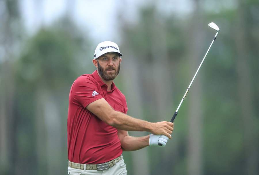PONTE VEDRA BEACH, FLORIDA – MARCH 10: Dustin Johnson of the United States waves on the second green during the first round of THE PLAYERS Championship on the Stadium Course at TPC Sawgrass on March 10, 2022 in Ponte Vedra Beach, Florida. (Photo by Sam Greenwood/Getty Images)