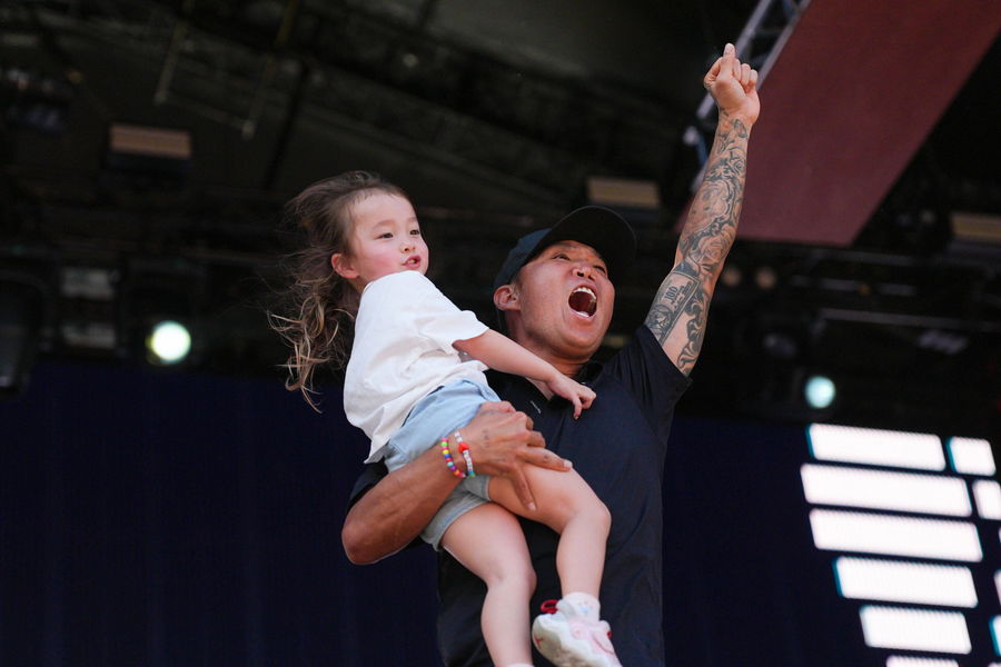 LIV GOLF ADELAIDE, Anthony Kim of 4Aces GC with daughter Bella after victory during Round 4 of the LIV Golf Adelaide at The Grange Golf Club in Adelaide, Sunday, February 15, 2026. NO ARCHIVING, EDITORIAL USE ONLY ADELAIDE SA AUSTRALIA PUBLICATIONxNOTxINxAUSxNZLxPNGxFIJxVANxSOLxTGA Copyright: xMATTxTURNERx 20260215185034115260